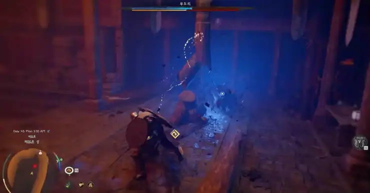 악연 웅카는 쌍수로 전환하고, 음식 50개 준비하기 1. [루드빅의 행방] 드웨인과 얀 만나기 2. [심판의 시간] 먼저 승냥이 목격된 장소 간다. 이후 목격자에게 말을 걸어 단서를 찾아야하는데 얀은 랜턴을 사용할 수 없다. 아래 그림을 통해 목적지까지 빠르게 간다. 울타리 안으로 들어가면 전투가 시작되니 양손도끼를 빼고 쌍수로 전환하는게 도움이 된다. 그리고 음식 장착도 빠져있어서 다시 장착하자.