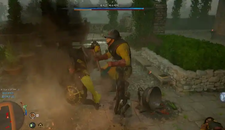 ▲ 성벽타고 가는게 가장 무난하다 ▲ 1층을 돌아다니면 지하계단이 있다 [바스티어 처치] 퀘스트 목적지 남서쪽에 숫돌, 모루, 요리할 수 있는 캠프가 있으니 정비하자. 1페이즈는 쉬운데, 2페이즈는 답이 없을 정도로 불쾌한 패턴이 많아 여기서도 음식을 100개 이상은 세팅하고 바스티어와 전투를 치르자.