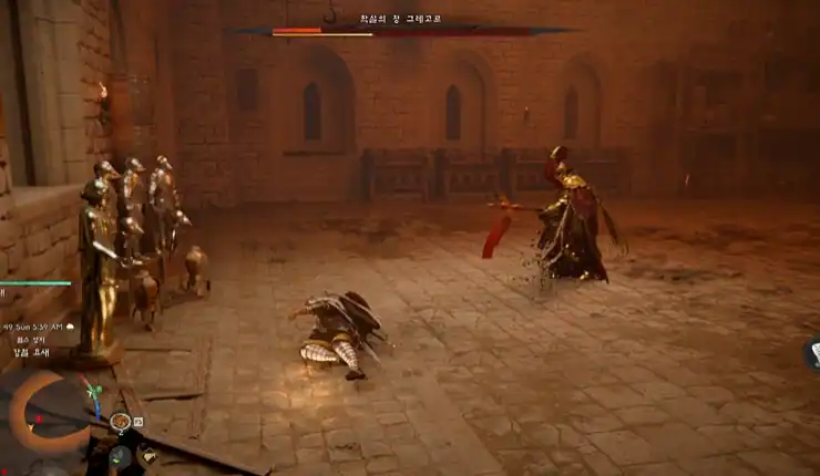 ▲ 주로 분신 연계 공격이 대부분이라 한 번 맞으면 끝도 없다 9. [피의 대관식] 해당 퀘스트를 진행하기 전에 소비된 음식을 다시 세팅하자. 곧바로 보스전을 진행하기 때뭉니다. 목적지 저택으로 2층까지 그냥 돌진하면된다. 이후 집무실에서 비지오네를 유지하고 NPC 2명을 따라가야한다. 비지오네를 장착 해제했다면 다시 장착하면 된다. 만약 취소되었다면 메뉴 - 기타 - 지식 - 기억의 파편 - 데메니스 - 회상 카테고리에서 '피의 대관식'을 선택하면 끝.
